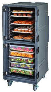 While the Ultimate Sheet Pan Rack was designed to hold sheet pans, it is up to the operator to decide what those sheet pans will hold. This is a great alternative to the larger insulated transports. You can pack and transport hot or cold meals to classrooms.